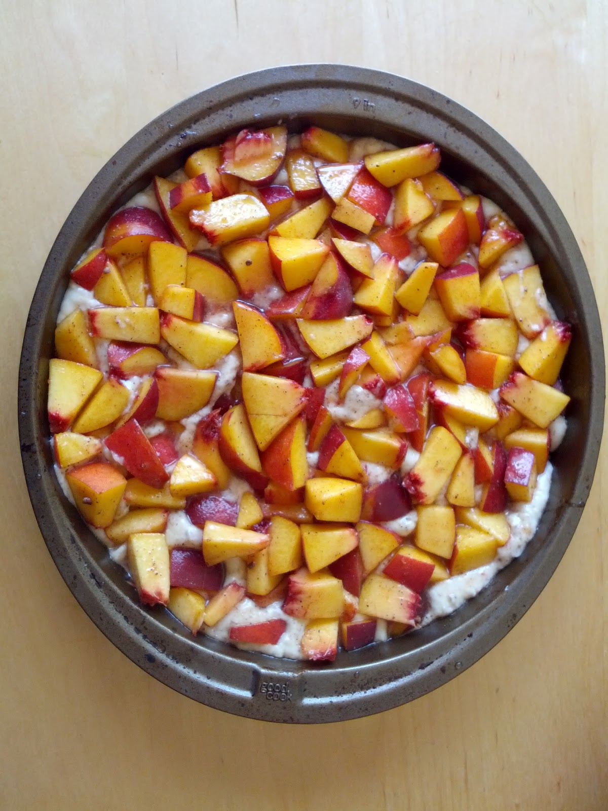 - Add one more peach. Before baking it looked like peaches were just about right in quantity (a tad more may be) but the cake rose very well and think it can take one more peach perhaps